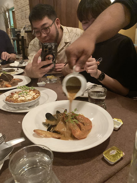 Seafood soup. I didn't try the seafood but only tasted a little of the soup.